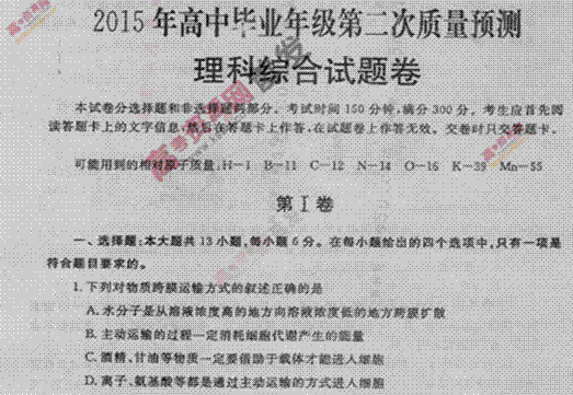 有道:《Ks5u首发》河南省郑州市2015届高三第二次质量预测 理科综合 扫描版含答案