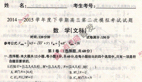 百度:《KS5U首发》辽宁省葫芦岛市六校协作体2015届高三第二次模拟考试 数学(文) 扫描版含答案