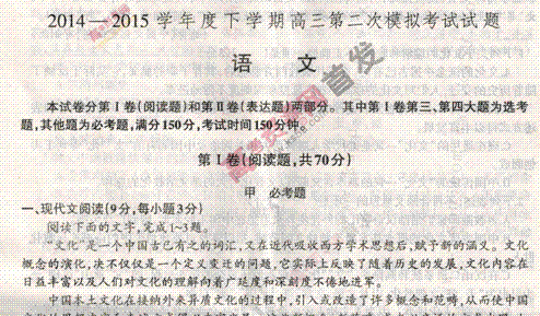 百度:《KS5U首发》辽宁省葫芦岛市六校协作体2015届高三第二次模拟考试 语文 扫描版含答案