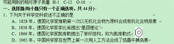 百度:《Ks5u首发》浙江省台州中学2014-2015学年高二下学期期中考试化学试卷 Word版含答案