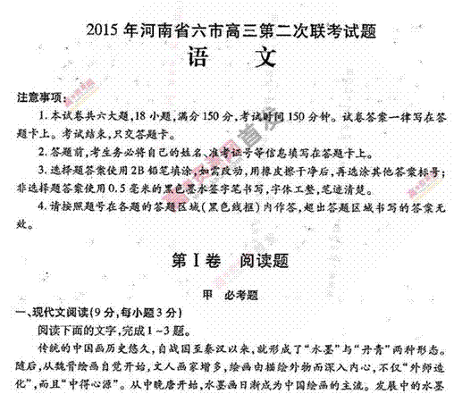 百度:《Ks5u首发》河南省六市2015届高三第二次联考 语文 扫描版含答案