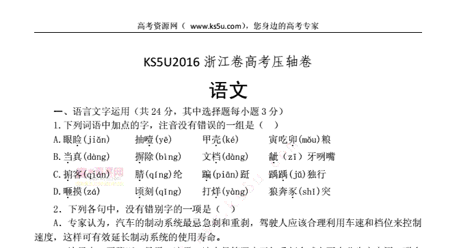 百度:KS5U2016浙江省高考压轴卷 语文 pdf版 含解析